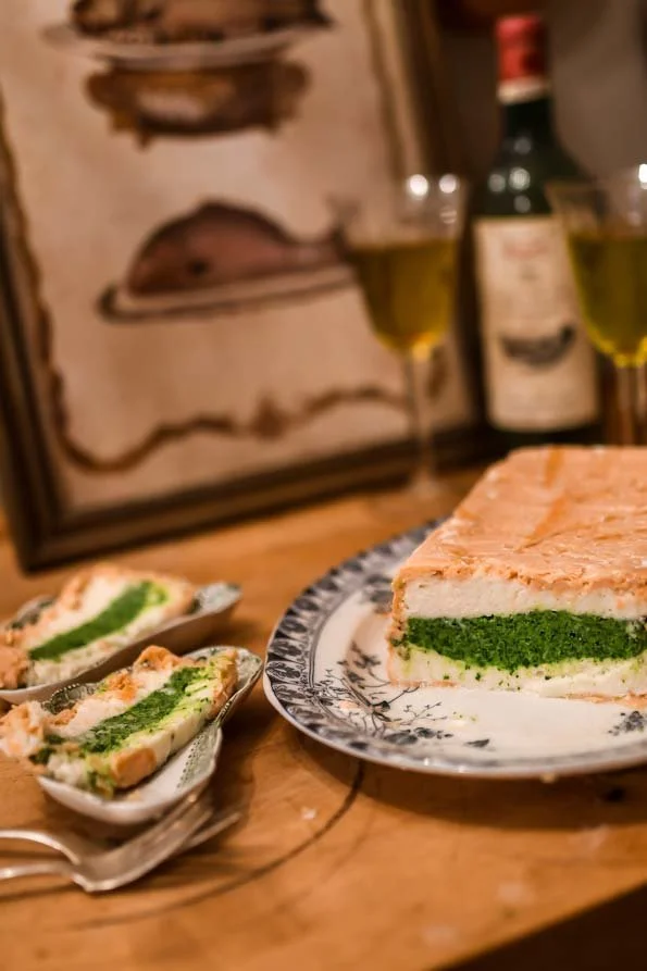 I thought you’d never ask. Well, it’s almost like a pâté but not quite. And they’re often made with veggies (Oh, I swoon over a good beet, carrot and turnip terrine) and they’re equally as often made with fish. AND they’re a great way to use leftovers. Leftover fish scraps. Leftover egg whites. That last little bit of fresh spinach that you don’t want to go to waste. They get their name from the dish in which they are prepared, naturally called “a terrine” and you can grab one in my store here. If you’re dying to make this right now and don’t want to wait for your new terrine to arrive… don’t panic. Simply use a loaf pan. I won’t tell the French.