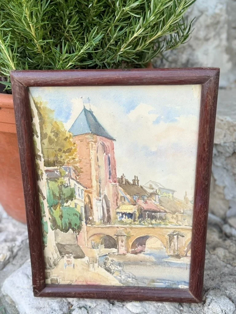 I bought my first oil painting with my kids in tow — probably fifteen years ago now, one drizzly overcast morning. We lived for Friday mornings when we’d set out for our weekly garage sale runs, a suburban full of energy and car seats. Them on the hunt for cardboard boxes full of LEGO castaways, and me on the hunt for anything that would remind me of France. Quarters from the couch cushions and snacks in tow, we’d follow those paper plates stapled to the telephone poles anywhere they’d take us. One drizzly Friday morning, after a few “lamos” (as we used to call them), I stumbled upon a garage sale that was like its own little Paris flea market.