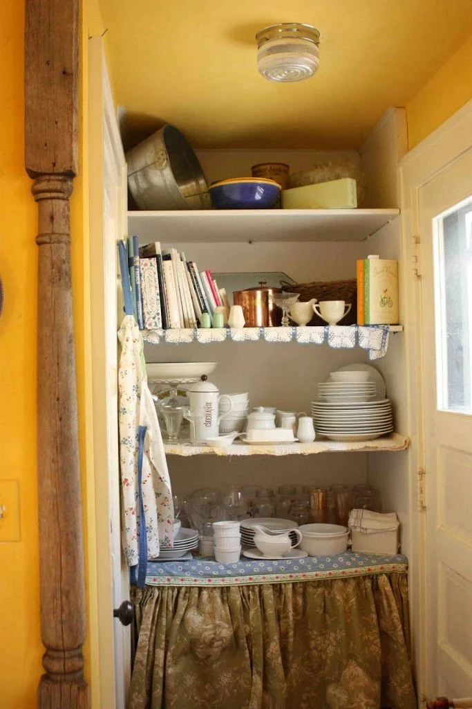 There is something homespun about NOT having built-in cabinets. I can bring in nostalgic pieces from my heritage (like my Grams Hoosier cabinet) I can hang pots and pans for easy reach…When you combine standalone pieces it brings in a coziness that’s very different from a conventional kitchen. And I’m not dissing conventional kitchens, but the quirkiness of an unfitted space brings a very different feeling.